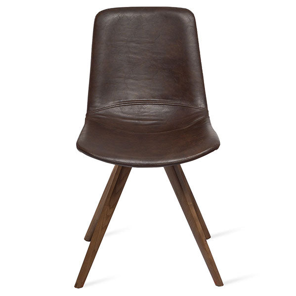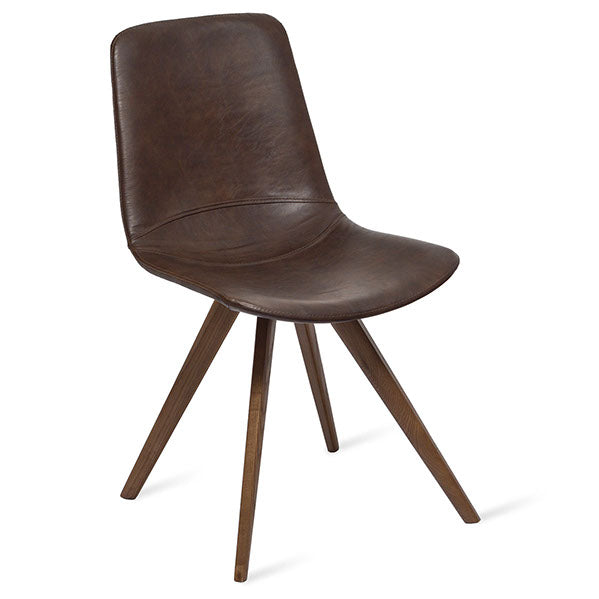 Silla tapizada en vinipiel con base de madera natural color nogal.