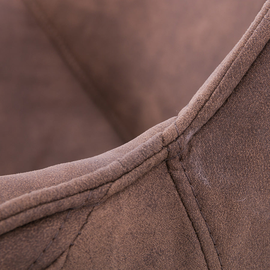 Sillón ocasional tapizado en tela nubuck, con patas de metal apariencia madera color nogal.